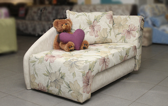 Малогабаритная кушетка на деревянном каркасе легко превращается в полноценную кровать(196*76). Вместительный бельевой ящик легко решает проблемы с хранением вещей.
