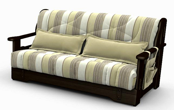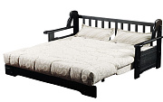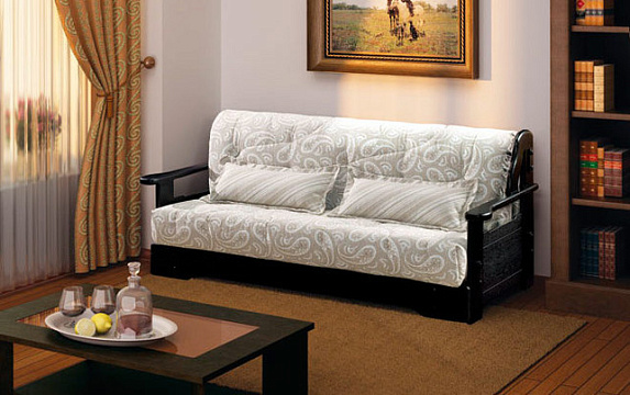 Деревянный декор из массива " бука" обрамляет спальное место.Минимальные габариты при максимально-комфортном размере спального места - удачный выбор для ценителей практичности.Диван - кровать может комплектоваться креслом.