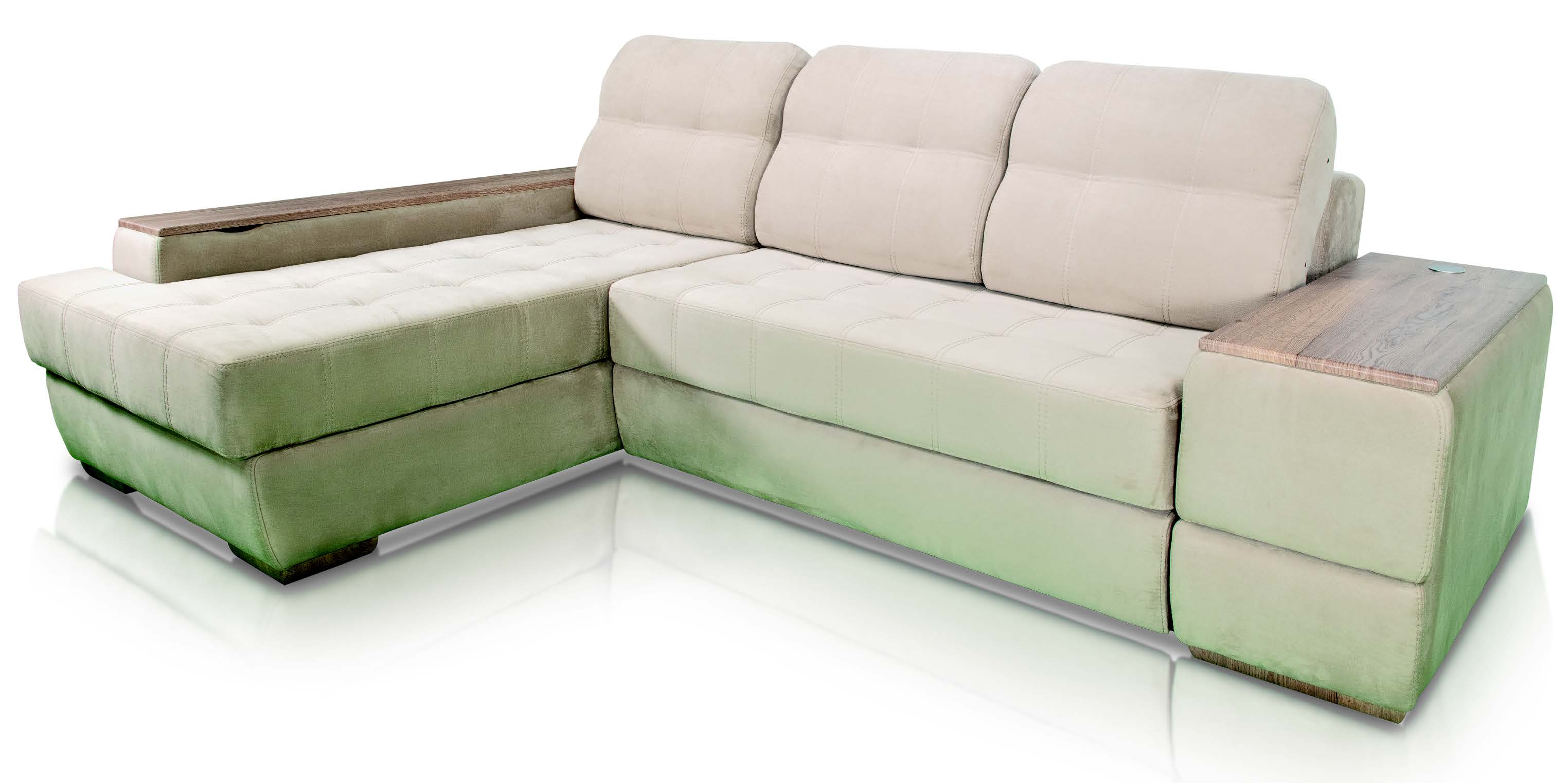 Диван-кровать «Best МД» многофункциональ- ная система, позволяющая составить различ- ную конфигурацию: прямой, угловой, П-об- разный. Разработан на основе дизайна дивана «Best» и является схожим в дизайне подушек, модульной системе и в дизайне подлокотни- ков, отличие – в расположении спального места (вдоль стены). Глубина дивана- 110 см. В основе фирменного матраса «Мануфактура уюта» – независимый пружинный блок (h120) и ППУ - лучшей марки «HR». Каркас изготовлен из березовой фанеры, толщи- ной 18 мм, усиленной по периметру фанерой 20 мм, благодаря этому модуль способен выдерживать большие нагрузки. Приспинные подушки поднимаются на фирменном уникальном механизме подъема «Best», который позволяет менять угол наклона и ре- гулировать размер глубины посадочного места, гарантируя одинаковый комфорт для людей разного роста. ПРИМЕЧАНИЕ: Модули не взаимозаменяемые, крепление на болт.Модуль №1 предназначен для сна на каждый день. Ширина спального места составляет 170 см. Ширина модуля: 140 см. (две приспинные подушки шириной по 70см.), 210 см.(три при- спинные подушки шириной по 70см.) В основе фирменного матраса «Мануфактура уюта» – независимый пружинный блок (h120) и ППУ - лучшей марки «HR», который повторяет анатомические изгибы тела, делает отдых максимально продуктивным. Каркас изготовлен из березовой фанеры, толщиной 18 мм, усиленной по периметру фанерой 20 мм, благода- ря этому модуль способен выдерживать большие нагрузки. Механизм трансформации – «выкатной дельфин» на газлифтах, разработан специально для этой модульной системы с долговечным функционалом. При комплектации модуля-1 (140см) с модулем-4 образуется спальное место 210х170 см.Модуль №4–невзаимозаменяемый (левый или правый) с углублением под под- локотник 23 см (комплектуется удлиненным подлокотником –D 4 У 180х23 см.) с вентилируемым коробом для хранения и усиленным дном. Доступ в короб осуществляется при помощи специального усиленного механизма, укомплек- тованного газлифтами, с усиленными тягами (увеличенная толщина металла), что делает использование модуля легким и комфортным. Ширина модуля: 94см. (одна приспинная подушка шириной 70см.), глубина – 200см.