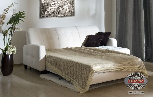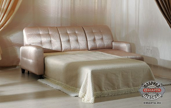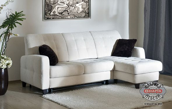 Возможно, это один из самых компактных угловых диванов в мире. Тем не менее, его спальное место составляет в длину более 2 метров! Металлический механизм трансформации рассчитан на ежедневные раскладывания в течение многих лет. При этом нет необходимости убирать подушки спинки - даже в положении «кровать» они остаются на месте.