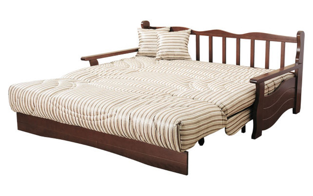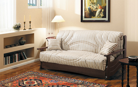 Сочетание оригинальной простежки чехла и мягких изгибов дерева " Ибицы" привнесет в интерьер тепло и безмятежность. Механизм трансформации "аккордеон" с легкостью превратит диван в кровать с широким и ровным спальным местом.