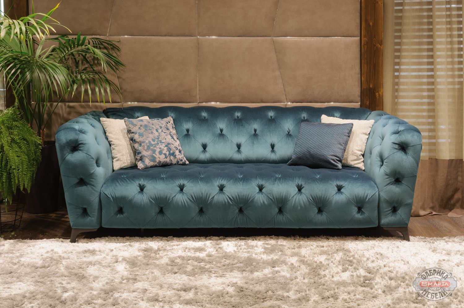 Формы «Люмьера» достаточно просты и лаконичны, но именно они в сочетании с глубокими утяжками-пике превращают этот диван в стильный предмет интерьера, который никогда не выйдет из моды. Стоит отметить его особенность - локотники и спинка дивана находятся на одной высоте и гармонично дополняют друг друга. Изящные деревянные ножки приподнимают диван над полом ровно настолько, чтобы он казался легким и воздушным. Особую пышность и мягкость форм придаёт пикировка, выполненная в технике "капитане" по всей поверхности.