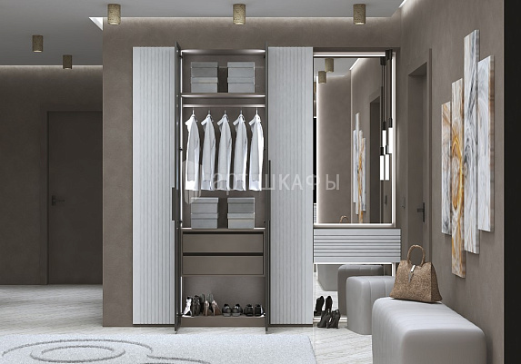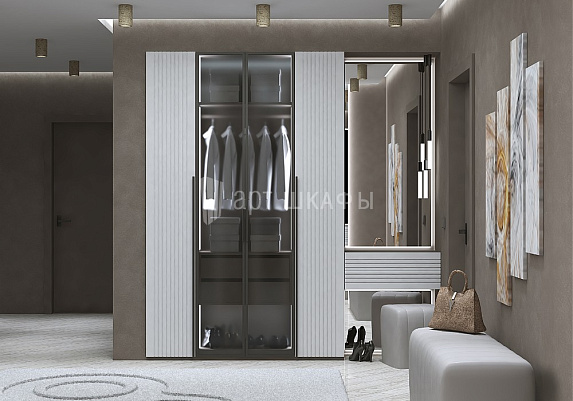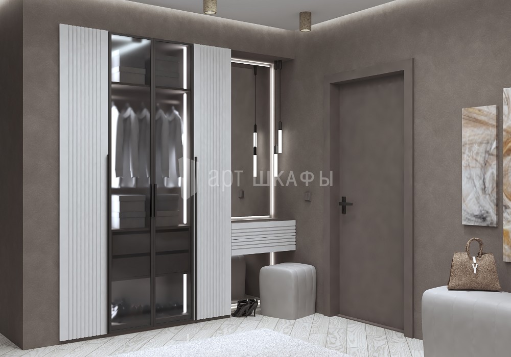 Распашной шкаф с фасадами МДФ эмаль и навесной тумбой с зеркалом,украсит помещение независимо от стилистики интерьера. Качественные материалы, строгость линий, простота оформления и лаконичная фурнитура прихожей создают эффект "благородной красоты". Просторная модель поможет аккуратно разместить на полках и вешалках сезонные, повседневные и бытовые вещи. Наши специалисты помогут вам подобрать необходимую мебель на заказ, учитывая все ваши пожелания.