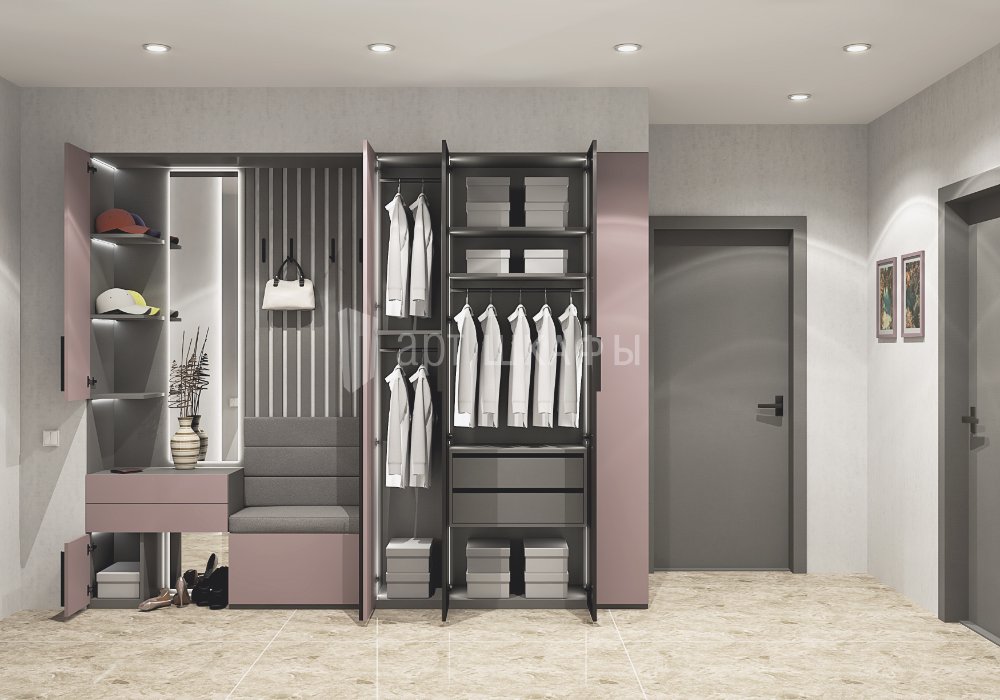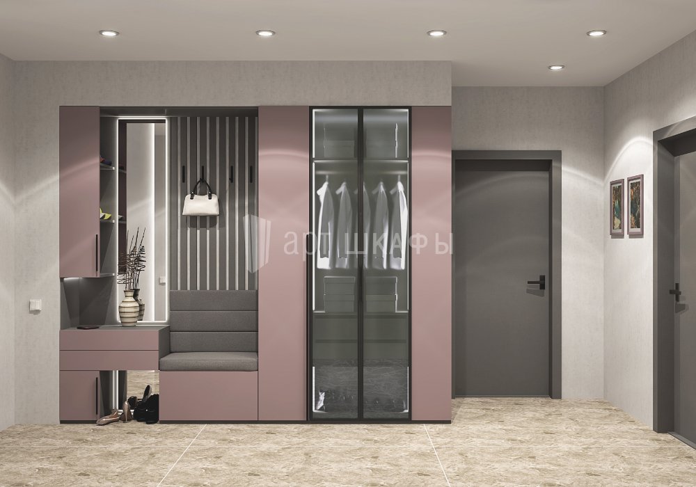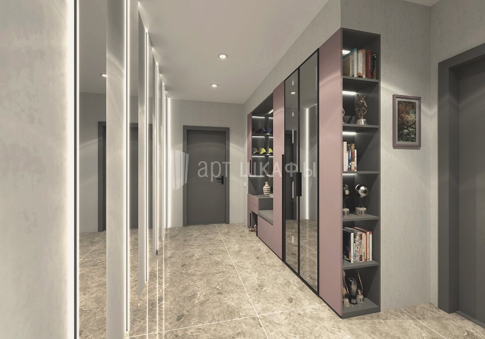 Лаконичная прихожая с мягкой стеновой панелью и зеркальными фасадами, в которой все продумано до мелочей, добавит обстановке солидности и уюта. Изделие выполнено в трендовом пастельно-фиолетовом оттенке, благодаря чему прихожая выглядит оригинально и стильно. Особого внимания заслуживает большой зеркальный фасад, который делает помещение светлее и просторнее. Такая модель будет уместна, как в современном, так и классическом интерьере. Наши специалисты помогут вам подобрать необходимую мебель на заказ, учитывая все ваши пожелания.