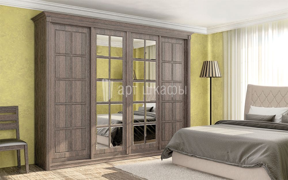 Шкаф-купе в классическом стиле, с фасадами "мозаика" в комбинации с МДФ-фрезеровкой и фацетной гравировкой, прекрасно впишется в классический интерьер. Производится по индивидуальным размерам на заказ.