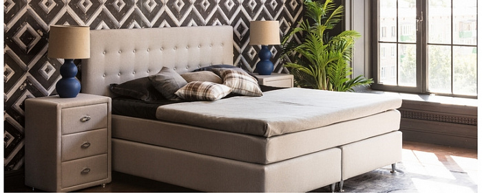 Спальная система Верона – современное и эффектное спальное место, которое станет центром любого любого классического и современного интерьера. Изголовье может быть выполнено в велюре или экокоже. Perrino Continental Beds - это сочетание классики и функциональности: Вы выбираете эффектную высокую и невероятно комфортную кровать, которую при этом отличает максимальный срок эксплуатации, гарантия 10 лет, абсолютная безопасность и отсутствие расшатывающихся элементов. В состав базовой комплектации входят изголовье и два стандартных бокса. Создать полноценное спальное место Вы можете, дополнив систему матрасом, на выбор с 500 или 1000 пружин, и топпером с уникальными мягкими наполнителями.