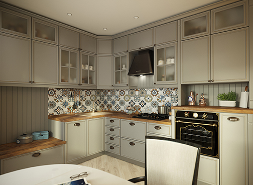 Большая угловая кухня в скандинавском стиле. Распашные фасады с петлями Sensys (Hettich Германия) — полностью металлические, с доводчиком, рассчитаны на 30 лет активной эксплуатации, легко выдерживают даже самые тяжелые фасады. Все выкатные ящики — Avantech (Hettich Германия) — полное выдвижение, доводчики, нагрузка 30 кг, полностью металлические боковины и задняя стенка. Ящики абсолютно безопасны и никогда не выпадут на ноги, ребенок может даже висеть на них. Укороченный пенал позволяет встроить духовку на эргономичном уровне, при готовке больше не придется нагибаться. Рядом с духовым шкафом расположена выкатная корзина без крепления к фасаду, с доводчиком. Вы можете хранить предметы первой необходимости при готовке рядом с варкой, все будет под рукой, очень удобно. Чтобы максимально увеличить место для хранения, верхние шкафы выбраны высотой 920 мм. Мойка из искусственного камня, гигиеничная, ударопрочная, практически бесшумная, 80% состава мраморно-гранитная крошка. Комплектация: Фасады МДФ в матовой эмали Столешница пластик, текстура дерева Стеновая панель - фотопечать Ручки-кнопки Рейлинг Вытяжка Elikor.