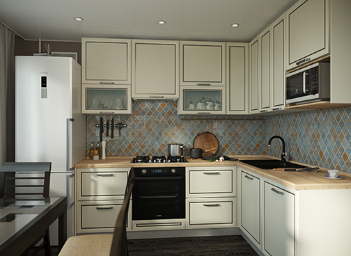 Большая угловая кухня в скандинавском стиле. Распашные фасады с петлями Sensys (Hettich Германия) — полностью металлические, с доводчиком, рассчитаны на 30 лет активной эксплуатации, легко выдерживают даже самые тяжелые фасады. Все выкатные ящики — Avantech (Hettich Германия) — полное выдвижение, доводчики, нагрузка 30 кг, полностью металлические боковины и задняя стенка. Ящики абсолютно безопасны и никогда не выпадут на ноги, ребенок может даже висеть на них. Чтобы максимально увеличить место для хранения, верхние шкафы выбраны высотой 920 мм. Мойка из искусственного камня, гигиеничная, ударопрочная, практически бесшумная, 80% состава мраморно-гранитная крошка. Комплектация: Фасады МДФ в эмали с патиной Столешница пластик, текстура дерева Стеновая панель - фотопечать Ручки-скобы Рейлинг Вытяжка Elikor.