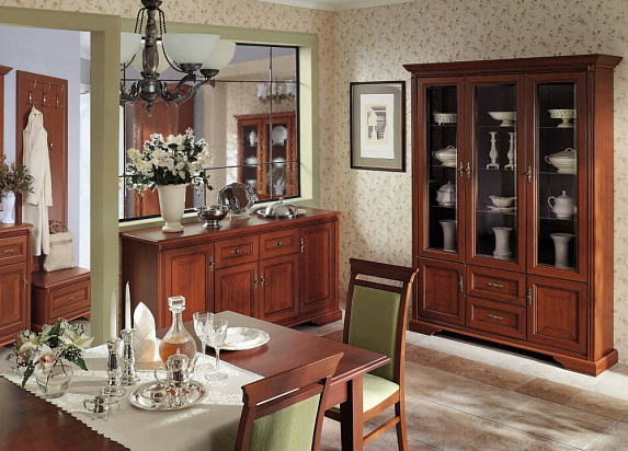 Стилиус - классический комплект благородного цвета с элегантными патинированными ручками хорошо впишется в комнаты любых размеров. Плавные изгибы ножек придают утонченность и завершенность системе.