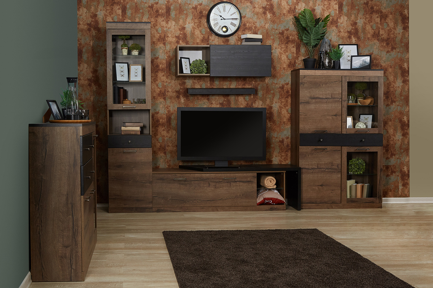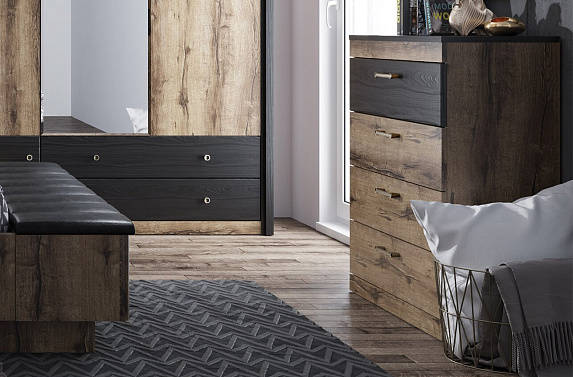 Отличительная черта коллекции JAGGER- это сочетание контрастов.Это современная мебель, которая хорошо смотрится и в классическом интерьере. Эта "многомерность" и уверенность были достигнуты благодаря умелому сочетанию дуба монастырского и части фасадов, поддерживаемых в чёрном цвете.