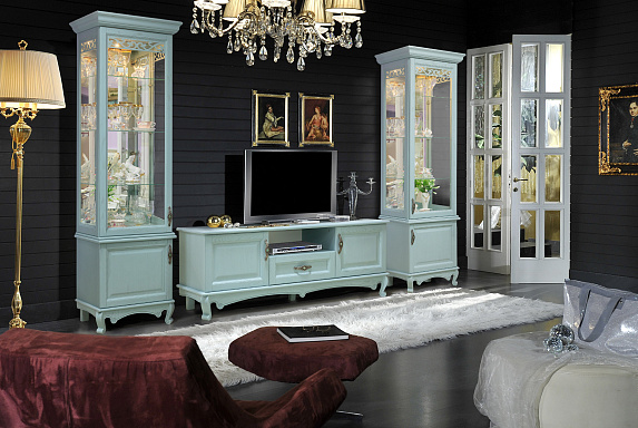 ГАБАРИТНЫЕ РАЗМЕРЫ: Шкаф с витриной 1-дв.: Д675*Г530*В2200мм Тумба под аппаратуру: Д1450*Г440*В550мм ВАРИАНТЫ КРАШЕНИЙ: - светло-серый (глянец или матовый); - темно-серый (гланец или матовый); - гарда (глянец или матовый); - графит (глянец или матовый); - белая эмаль; - слоновая кость; - ваниль; - давиль; - каштан; - черешня; - темный орех ВАРИАНТЫ ПАТИН: - орех; - серебро; - золото; - бронза; - сиреневый жемчуг; - розовый жемчуг; - фисташка; - коралл ПРИ ЗАКАЗЕ КРАШЕНИЯ С ПАТИНИРОВАНИЕМ ЦЕНА ИЗДЕЛИЯ УВЕЛИЧИВАЕТСЯ НА 5%!!! Окраска изделий всегда осуществляется подетально! Каждый элемент окрашивается отдельно, что исключает появление неокрашенных мест в процессе эксплуатации изделий. При отделке изделий используются мебельные лаки, морилки, патины и эмали производства Италии и Германии! Отделочные работы производятся в итальянских покрасочных камерах, что предотвращает появление пыли и обеспечивает высокое качество покрытия. ФУРНИТУРА: Изделие оснащено качественной фурнитурой известных мировых брендов: - направляющие - шариковые; - петли с доводчиками