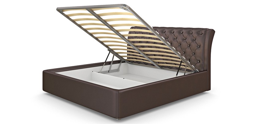 Кровать в мягкой обивке Флорида с подъёмным механизмом основания и бельевым ящиком, позволит Вам создать комфортное и функциональное спальное место, о котором, возможно, Вы всегда мечтали. Конструкция кровати представляет собой прочный каркас в обивке плотным мебельным ППУ и износостойкой экокожей или мебельной тканью (на выбор). Каркас, в свою очередь, выполнен на основе Л ЛДСП и МДФ, не содержащего клея и формальдегидных смол. Мягкая спинка с утолщённой обивкой мебельным ППУ украшена каретной стяжкой, придающей кровати стильный внешний вид. Кровать имеет внутреннее пространство для хранения, доступ к которому обеспечивают два газовых подъёмных механизма STABILUS (пр-ва Германии), силой 1150 Ньютон каждый (т.е. способностью выдерживать до 117,3 кг нагрузки). Подъёмный механизм Via Ferrata имеет угол подъёма рамы 40 градусов, обеспечивая легкий доступ к пространству под решёткой. Пол внутренних ящиков выполнен из ламинированного МДФ (каждая пластина выдерживает нагрузку до 15 кг), имеет сдвижную конструкцию для обеспечения возможности уборки непосредственно под кроватью.