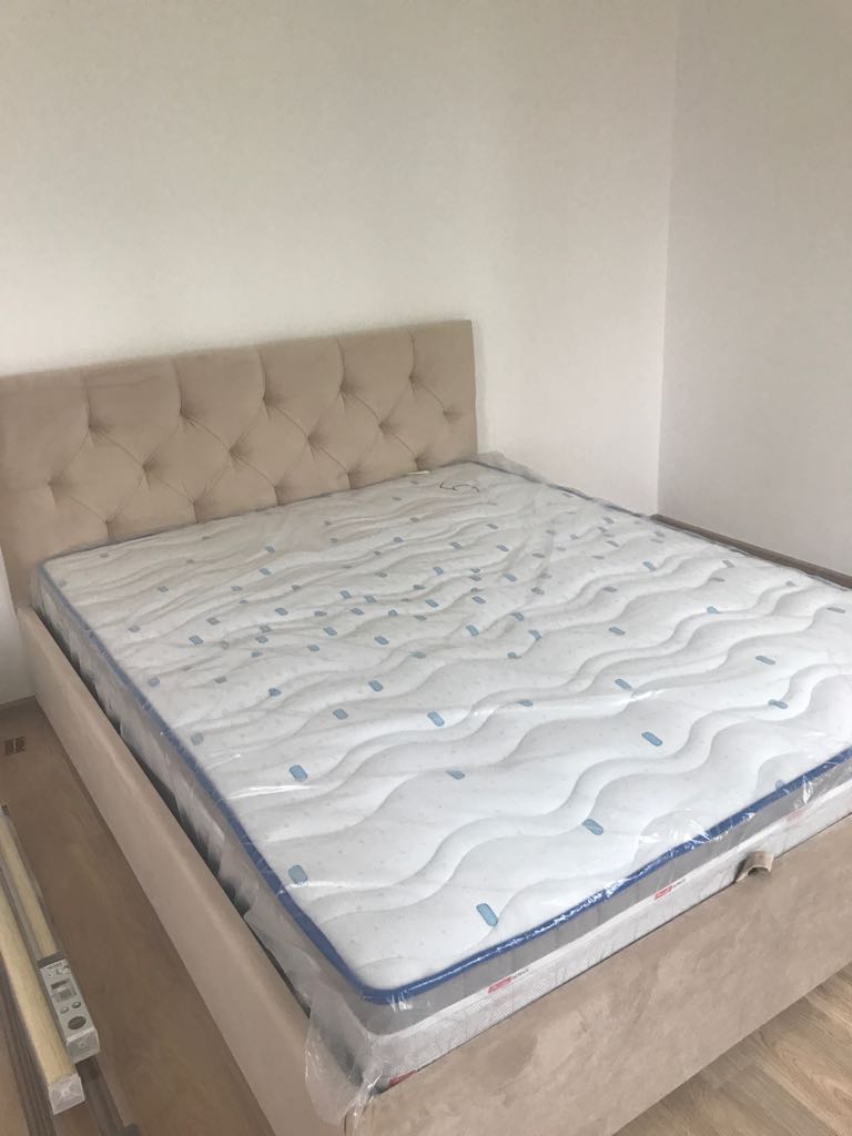 Калифорния станет украшением любой спальни и интерьера. Если вы хотите сделать кровать более функциональной, добавьте в комплектацию решетку с подъемным механизмом и ящиком для белья. Система хранения глубиной 25 см очень вместительная и надежная, позволит вам с пользой использовать дополнительное место под кроватью. Каркас: ЛДСП и мебельный ППУ, в основании установлены металлические уголки для прочности. Обивка: безопасная, легко чистящаяся и долговечная экокожа или ткань. Дополнительно вы можете оформить спинку стразами или пуговицами, заказать чехлы на боковых элементах кроватей съемные на липучках.
