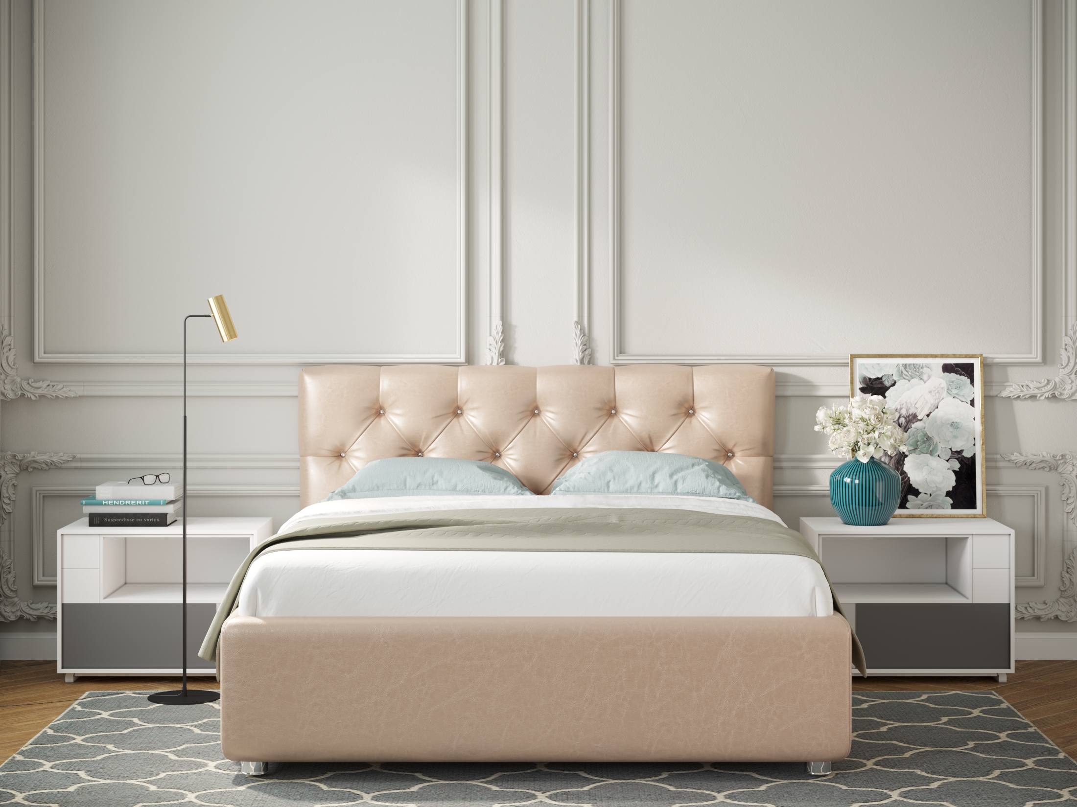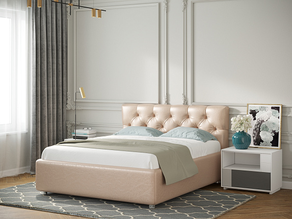 Великолепная кровать Rimini с каретной стяжкой изголовья — незаурядная классика для утонченных натур. По желанию покупателя изголовье кровати может быть украшено декоративными пуговицами или стразами (приобретается отдельно). Характеристики: Обивочная ткань: экокожа, ткань (велюр, микрофибра, рогожка, микровелюр, вельвет) - на выбор. Оборотная сторона изголовья: техническая ткань Файбертекс*. Материал каркаса кровати (царги): ЛДСП, класс эмиссии E1. Материал каркаса спинки: массив, усиление каркаса листом HDF с двух сторон, ППУ. Основание на выбор:** ортопедическое на ножках с березовыми ламелями (расстояние между ламелями 7.8 см); ортопедическое основание с ПМ и ящиком для белья, каркас кровати на ножках; комплектация IQ с ПМ и ящиком для белья без дна (дно к ящику IQ - дополнительная платная опция), каркас кровати на цоколе, декоративный чехол на цоколе съёмный, декоративный чехол на цоколе съёмный. Материал дна ящика для белья (при заказе кровати с ПМ): при заказе с ПМ и ящиком для белья - MDF (МДФ), класс эмиссии E1; при заказе комплектации IQ (дополнительная опция) - HDF (ХДФ). Глубина ящика для белья (при заказе с подъемным механизмом), см: при заказе с ПМ и ящиком из МДФ на ножках - 28.5 см, «полезная глубина» 20 см., нагрузка на каждое отделение ящика не более 80 кг; при заказе с ПМ в комплектации IQ на цоколе - 30 см, без ограничения нагрузки на ящик. Стандартное исполнение - без дна. Материал мягких элементов: ППУ. Чехлы на царгах: съемные, на липучках. Глубина ящика для белья (при заказе с подъемным механизмом), см: 28.5 см, «полезная глубина» 20 см. Размеры спального места, см: 120х200, 140х200, 160х200, 180х200. Внешний габарит,см: 132х213, 152х213, 172х213, 192х213. Толщина каркаса кровати, см: 5. Углубление под матрас, см: 7. Высота от пола до царги, см: 6,5. Рекомендованная высота матраса: 16-35 см. *В стандартном исполнении задняя часть изголовья (спинка) выполнена в технической ткани и по желанию покупателя может быть выполнена в основной ткани (дополнительная платная опция). **Для удобства проноса изделия в любые дверные проёмы возможно заменить стандартный цельнометаллический каркас основания на разборный (в любой комплектации: ортопедическое основание на ножках или основание с подъемным механизмом) — без доплаты. Заказ на кровать принимается только в комплекте с основанием. Нестандартные размеры не изготавливаются. ***Цена указана за кровать (спальное место 120*200) в 1 категории ткани без подъемного механизма