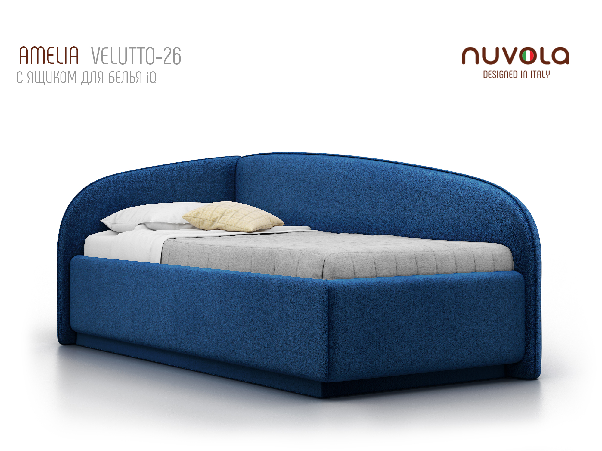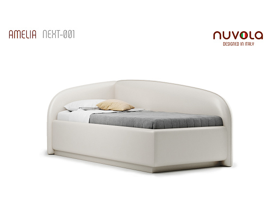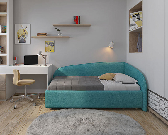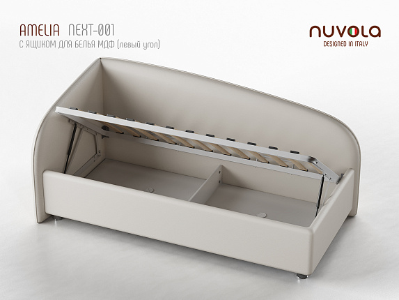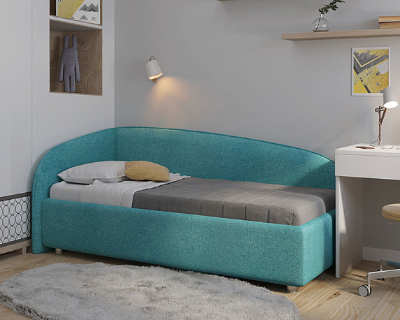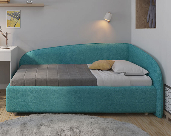 Односпальная кровать-тахта без острых углов по доступной цене - стиль и элегантность по приемлемой цене! Новинка от компании NUVOLA: угловая кровать-тахта Amelia (матрас является дополнительной платной опцией)! Мягкая и уютная кровать Нувола Амелия с минимальным декором подойдёт как детям, так и взрослым. На угловой кровати комфортно всё: играть, читать, смотреть телевизор, просто облокотившись на одну из двух спинок кровати. Amelia - идеальный выбор односпальной кровати для Вас или Вашего ребенка! Одним движением руки Вы можете превратить кровать в диван! Закажите вместе с кроватью декоративный чехол на матрас к кровати Amelia из мебельной ткани**, уберите постельное бельё в просторный ящик и вуаля — перед вами удобный и компактный угловой диван (особенно актуально для детских комнат или гостиных). Особенности кровати Amelia: спинка и боковина кровати имеют отделку в виде канта, который может быть выполнен в тон ткани кровати или из ткани другого тона (контрастный, дополнительная платная опция); изголовье и спинка с оборотной стороны выполнены в основной ткани - эстетично; спинка и боковины имеют плавное скругление - не травмоопасно, безопасно для детей; при заказе в комплектации с подъемным механизмом вы получаете кровать с вместительным ящиком для хранения белья/игрушек, разделенный на два отделения (при заказе комплектации IQ ящик без разделения - большой, глубокий и просторный). Механизм подъема основания боковой; вариант исполнения угла кровати правый или левый - на выбор покупателя - поможет расположить кровать в любой части комнаты (на фото представлена кровать с исполнением угла - левый). Характеристики: Обивочная ткань: экокожа, ткань (велюр, микрофибра, рогожка, микровелюр, вельвет) - на выбор. Оборотная сторона изголовья: основная ткань. Материал каркаса кровати (царги): ЛДСП, класс эмиссии E1. Материал каркаса спинки: массив, усиление каркаса листом HDF с двух сторон, ППУ. Основание на выбор: ортопедическое на ножках с березовыми ламелями (расстояние между ламелями 7.8 см); ортопедическое основание с ПМ и ящиком для белья, каркас кровати на ножках; комплектация IQ с ПМ и ящиком для белья без дна (дно к ящику IQ - дополнительная платная опция), каркас кровати на цоколе, декоративный чехол на цоколе съёмный, декоративный чехол на цоколе съёмный. Материал дна ящика для белья (при заказе кровати с ПМ): при заказе с ПМ и ящиком для белья - MDF (МДФ), класс эмиссии E1; при заказе комплектации IQ (дополнительная опция) - HDF (ХДФ). Глубина ящика для белья (при заказе с подъемным механизмом), см: при заказе с ПМ и ящиком из МДФ на ножках - 28.5 см, «полезная глубина» 20 см., нагрузка на каждое отделение ящика не более 80 кг; при заказе с ПМ в комплектации IQ на цоколе - 30 см, без ограничения нагрузки на ящик. Стандартное исполнение - без дна. Материал мягких элементов: мебельный ППУ. Чехлы на царгах: съемные, на липучках. Внешний габарит: 104х206 см. Высота изголовья: 90 см. Рекомендованная высота матраса: 12-35 см. Вариант исполнения угла: левый, правый * * для определения варианта исполнения угла требуется "встать" по длинной стороне угловой кровати, лицом к длинной боковине и определить, с какой стороны будет изголовье: изголовье со стороны левой руки - вариант исполнения "левый", изголовье со стороны правой руки - "правый" (на фото представлена кровать с исполнением угла - левый). ** имеетс