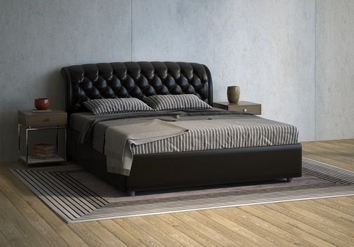 Стильная интерьерная кровать из экокожи с изогнутым изголовьем и широкими царгами. Модель изготовлена из ДСП. В комплект кровати входит кроватное основание. Каркас основания выполнен из металла, ламели - из берёзы. При необходимости кровать Venezia из экокожи может поставляться с подъемным механизмом и бельевым ящиком.
