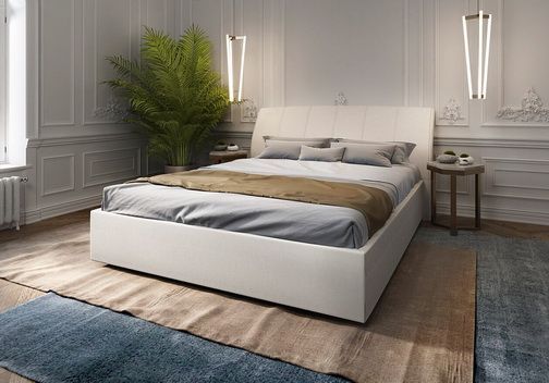 Стильная двухместная кровать с изогнутым изголовьем и широкими царгами. Модель изготовлена из ДСП. В комплект кровати входит кроватное основание. Каркас основания выполнен из металла, ламели - из берёзы. При необходимости двухместная кровать может быть доукомплектована подъемным механизмом с бельевым ящиком.