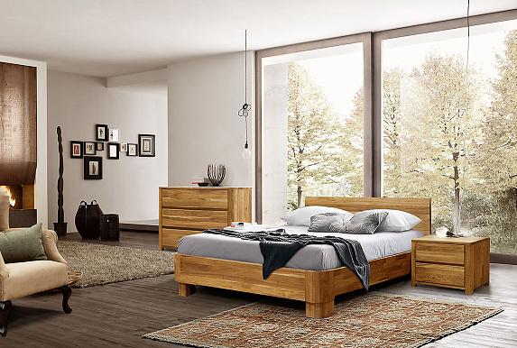 Мебель изготовлена из массива дуба. Все изделия покрыты бейц-маслом, что позволяет сохранить природную фактуру дерева.