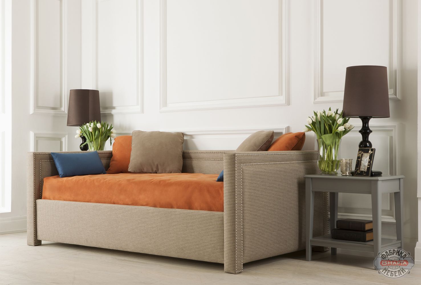 Односпальная кровать «Йорк» — практичная софа в американском стиле для гостиных, детских комнат и гостевых спален. Кровать с прямоугольной спинкой и прямыми локотниками, украшенными декоративными гвоздиками по периметру корпуса, гармонично впишется в любой интерьер. Выберите подходящее оформление — однотонный бархат или велюр, ткань в клетку, материал с цветочным или графическим принтом.