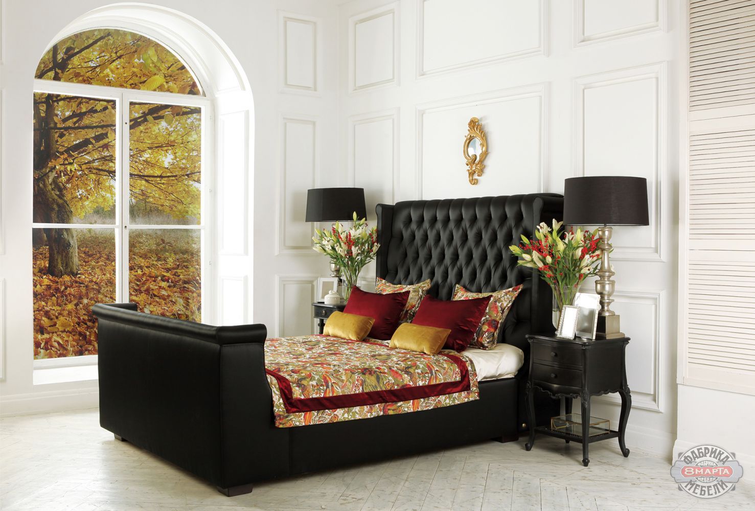 Кровать «Примавера» выглядит роскошно благодаря высокому изголовью с глубокими утяжками. В зависимости от материала и цвета обивки модель может быть лаконичной или яркой.