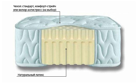 Мягкий ортопедический матрас Matramax Мегафлекс Латекс 20. Состав: натуральный латекс - 17 см. Чехол: ткань Comfort Streeetch (хлопок) или Matramax Antistress (велюровая ткань с антистатическим покрытием) на выбор, простеганный на холлофайбере. Беспружинный на основе натурального латекса