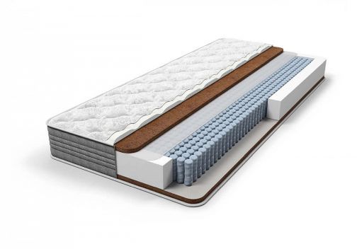 Кокосовый матрас в основе которого блок независимых пружин MultiPocket, плотностью 1 024 пружины на спальное место. Благодаря высокой плотности пружин матрас обеспечивает качественную поддержку позвоночника, выдерживает большие нагрузки и равномерно распределяет вес по всей горизонтальной поверхности матраса. Матрас с одинаковой жесткостью сторон на основе натуральных наполнителей. Кокосовая койра с обеих сторон обеспечивает максимальный ортопедический эффект благодаря повышенной жесткости. Чехол кокосового матраса выполнен из высококачественного трикотажа, простеганного на объемном гипоаллергенном синтепоне. Возможно также исполнение чехла в хлопковом жаккарде. Матрас возможно изготовить нестандартной длины до 2200 мм.