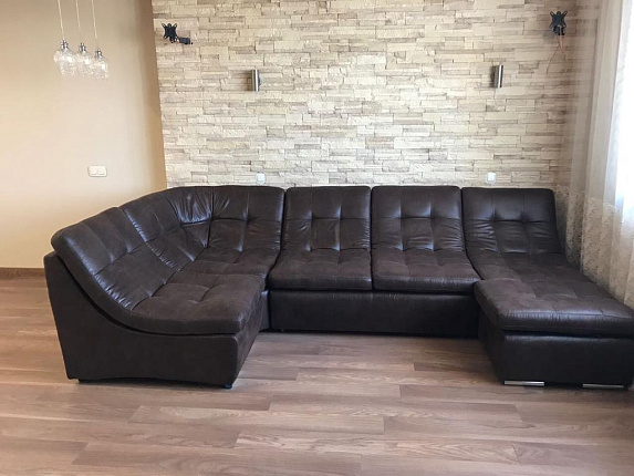 Женева MAX – удобный и стильный диван для всей семьи. Наполнит Ваш дом уютом и станет неотъемлемой частью вечеров в компании близких людей. Женева - это модель-конструктор. Модули можно переставлять и менять дизайн дивана на свое усмотрение, они легко разбираются и собираются между собой при помощи специальных зацепов. Благодаря разработкам технологов диван имеет потрясающую эргономичную посадку, которая подойдет даже самым взыскательным пользователям. Конструкция изделия позволяет принимать форму человеческого тела, при этом поддерживая спину, что способствует правильному кровотоку в организме. Механизм «Мультиформ» позволит за несколько не сложных движений создать удобную кровать с ортопедическим матрасом. Также возможно установить механизм трансформации «Дельфин» - просто потяните за скрытую петлю под пуфиком! Третьим вариантом является механизм трансформации «Французская раскладушка». Угловой диван Женева MAX может быть произведен в ткани любого типа, а также и в коже с использованием латексного пенополиуретанового наполнителя марки HR с поддержкой резинотканевыми ремнями. Совокупность ремней и наполнителя дают прекрасную эргономичную посадку, что также сохраняет внешний вид и комфорт модели в течении долгих лет. Цвет прострочки также можно изменить. Классическое исполнение модели не предусматривает подлокотников, но они могут быть добавлены по желанию покупателя. Все подушки на диване - со съемными чехлами. Габаритные размеры: ширина 385 см, высота 86 см, глубина 200 см. Дополнительные опции: ящик для белья. Материал и цвет обивки может быть изменен по желанию клиента. Женева MAX производится в России на фабрике Aura Interiors лучшими специалистами с использованием новейших техник и экологичных материалов. Обратите Внимание! При покупке дивана - подарок 2 подушки или пуф-куб.
