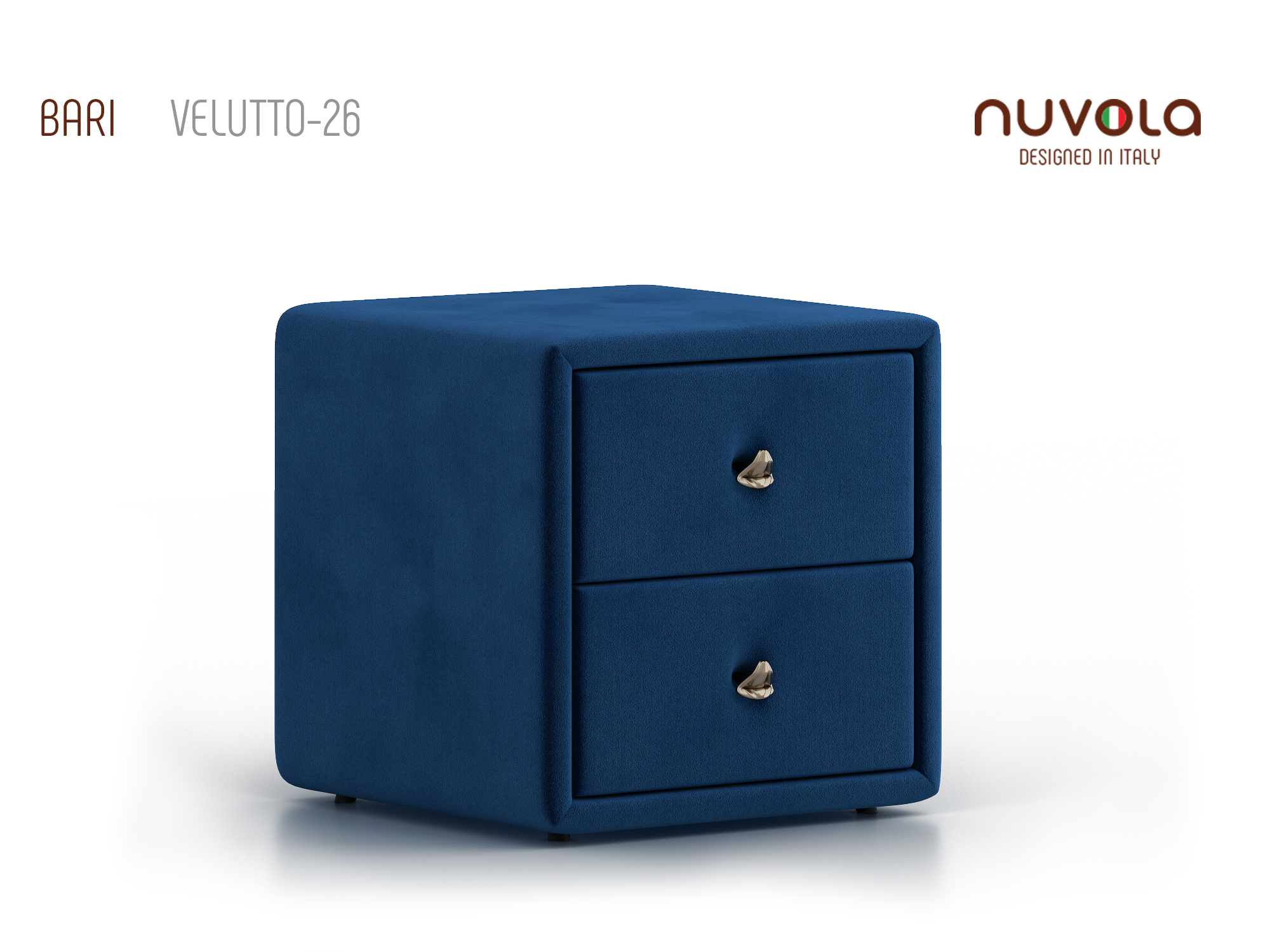 Интерьерная прикроватная тумба с двумя выдвижными ящиками, без ног (технические) с матовой ручкой. Мягкая прикроватная тумба Bari не только элемент декора, но и достаточно функциональный предмет мебели Вашей спальни: на ней, и в ней, мы будем хранить то, что пригодится нам перед сном и сразу после пробуждения - косметика, наручные часы, очки, телефон, наушники, книга и много другое. Нижний ящик тумбы более глубокий. Тумба Бари поставляется без ног, фурнитура - матовая Для плавного и бесшумного закрытия ящиков тумбы предлагаем установить доводчики (дополнительная платная опция). Материал каркаса: ЛДСП. Обивка: ткань, кожа, экокожа - на выбор. Срок службы: не менее 10 лет. Поставляется в собранном виде. ***Цена указана за модель без доводчиков в 1 категории ткани