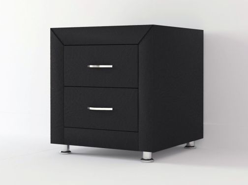 Прикроватная тумба с двумя выдвижными ящиками сочетается с любыми моделями кроватей, органично вписывается в интерьер практически любого стиля. Каркас тумбы выполнен из ДСП. Каркас тумбы и фасад ящиков покрыты обивочным материалом. Для удобства использования и продления срока эксплуатации, рекомендуется использовать стеклянную накладку. Накладка используется в качестве столешницы для тумбы и защищает ее от повреждений и загрязнений