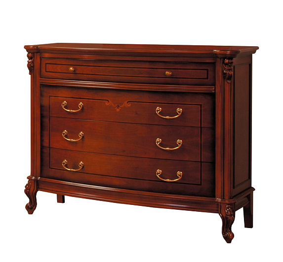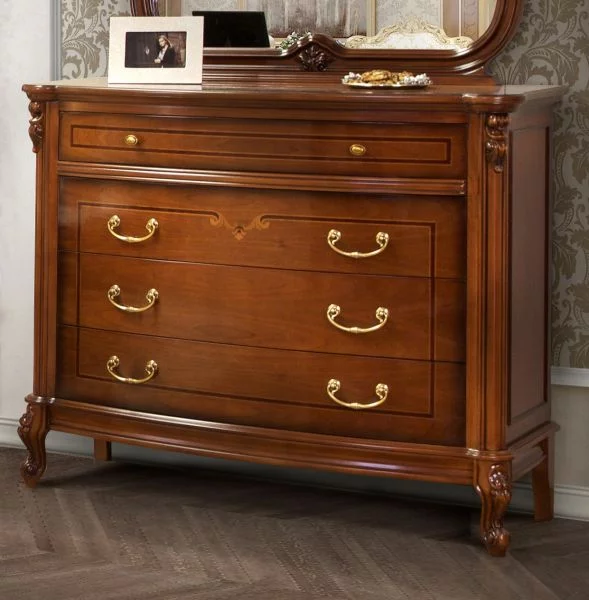 Комод из массива дерева, роскошный и элегантный. Тонкие линии, декоративные вставки, скульптуры — все это сделано вручную, с заботой и страстью опытными мастерами, так что этот комод из массива дерева бросает вызов времени и радует глаз. Комод создан со знакомым и узнаваемым дизайном традиционной классической формы. Ручная резьба, выполненная мастерами румынской фабрики, отражает элегантность и утонченность. Модель прекрасно подходит для оформления спальной зоны как дома, так и в квартире. Комод имеет чёткую лаконичную форму.