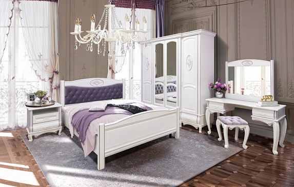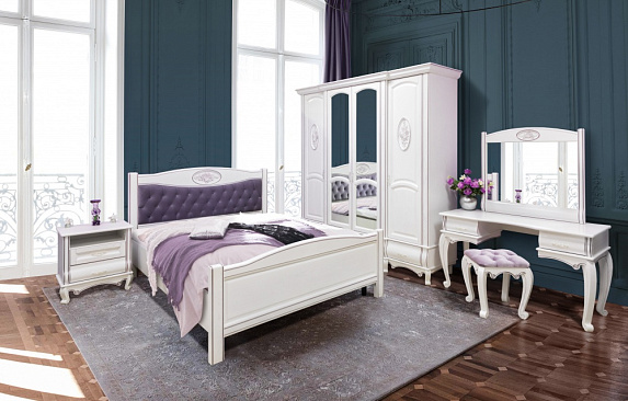 Что может быть лучше комфортной спальной комнаты, наполненной мебелью из натурального дерева? Преимущества такой мебели неоспоримы! Дизайнеры нашей фабрики сумели удачно совместить классические традиции и современные разработки, в результате чего получили изысканную, стильную и функциональную спальню «Оскар». Отличительная особенность данного комплекта — потрясающей красоты, резные декоративные элементы, выполненные из массива ясеня и украшающие изголовье кровати, створки шкафа и раму зеркала. Мы предлагаем несколько вариантов резного декора на Ваш вкус - "Розы" или "Вензель" (образцы декора представлены на фото). Все элементы спальни стоят на изящных изогнутых ножках-кабриоль и украшены изысканными цоколями, выполненными из массива ясеня и обработанными опытными мастерами вручную! СОСТАВ КОМПЛЕКТА (на фото): 1. Шкаф 4-дв.,с декором "Розы": Д2200*Г650*В2250мм 2. Кровать с изножьем, с мягким изголовьем, с декором "Розы" (160х200): Ш1700*Д2100*В1100мм 3. Стол туалетный: Д1350*Г590*В750мм 4. Зеркало навесное, с декором "Розы": Д900*Ш860мм 5. Банкетка малая: Д450*Ш450*В500мм 6. Тумба прикроватная (2шт): Д600*Г380*В620мм *** По желанию Заказчика, комплект может дополнен другими изделиями серии "Оскар". Кровати "Оскар" могут быть изготовлены как с изножьем так и без него, со спальными местами различных размеров! Изголовье кровати может быть декорировано качественной, устойчивой к истиранию мебельной тканью или экокожей, в технике "каретная стяжка" и украшено стразами/пуговицами! * Ортопедическое основание в стоимость кровати не входит и приобретается отдельно!!! ВАРИАНТЫ КРАШЕНИЙ: - светло-серый (глянец или матовый); - темно-серый (гланец или матовый); - гарда (глянец или матовый); - графит (глянец или матовый); - белая эмаль; - слоновая кость; - ваниль; - давиль; - каштан; - черешня; - темный орех ВАРИАНТЫ ПАТИН: - орех; - серебро; - золото; - бронза; - сиреневый жемчуг; - розовый жемчуг; - фисташка; - коралл ПРИ ЗАКАЗЕ КРАШЕНИЯ С ПАТИНИРОВАНИЕМ ЦЕНА ИЗДЕЛИЯ УВЕЛИЧИВАЕТСЯ НА 5%!!! Окраска изделий всегда осуществляется подетально! Каждый элемент окрашивается отдельно, что исключает появление неокрашенных мест в процессе эксплуатации изделий. При отделке изделий используются мебельные лаки, морилки, патины и эмали производства Италии и Германии! Отделочные работы производятся в итальянских покрасочных камерах, что предотвращает появление пыли и обеспечивает высокое качество покрытия. ФУРНИТУРА: Изделие оснащено качественной фурнитурой известных мировых брендов: - направляющие - шариковые - петли с доводчиками