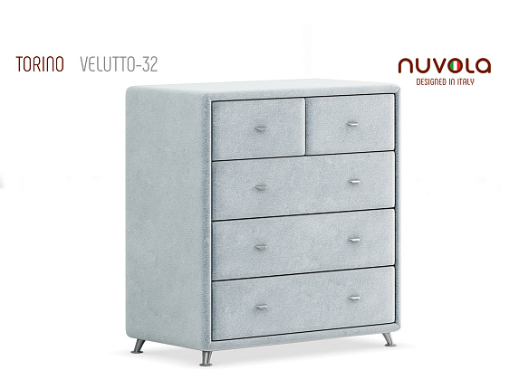 Мягкий, удобный и вместительный комод Торино на изящных ножках от Nuvola - многофункциональное и практичное место для хранения одежды. Отлично впишется в любой интерьер спальни, прихожей или гостиной. Для плавного и бесшумного закрытия ящиков комода предлагаем установить доводчики (дополнительная платная опция). При заказе комода в текстильном исполнении не забудьте заказать столешницу из стекла со скругленными углами - безопасно! Размер: 90x48x99 см. Дополнительные платные опции: комплект доводчиков, стекло на столешницу, оборотная сторона комода в основной ткани (по умолчанию мебельный файбертекс). Материал каркаса: ЛДСП, мебельный ППУ. Обивка: ткань, кожа, экокожа, велюр, вельвет, микрофибра - на выбор. Срок службы: не менее 10 лет. Поставляется в собранном виде. ***Цена указана за модель в 1 категории ткани