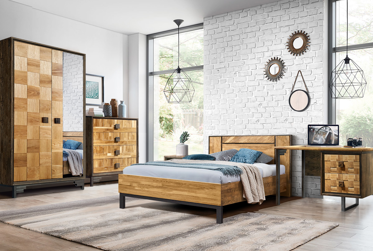 Спальня Cube Design # 3 в стиле Лофт . Сочетание двух оттенков и фасада «шашки». Кровать шкаф 2 -х дверный, комод и стол письменный.