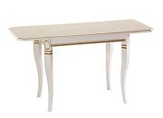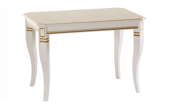 Стильный обеденный складной стол «Кадис 130/80-Ш» из натурального дерева поможет создать уютную зону на кухне. Изогнутые ножки обеденного стола выполнены из цельного массива бука, что гарантирует долговечность. Надежный механизм царгового крепления позволяет самостоятельно раздвинуть стол до 168 см в длину, и вы приятно проведете время большой компанией. Столешница белого цвета с золотой патиной изготовлена из МДФ, облицованного шпоном ясеня. Белый обеденный стол «Кадис 130/80-Ш», разработанный зарубежными дизайнерами в классическом стиле, станет украшением обеденной группы Кадис.