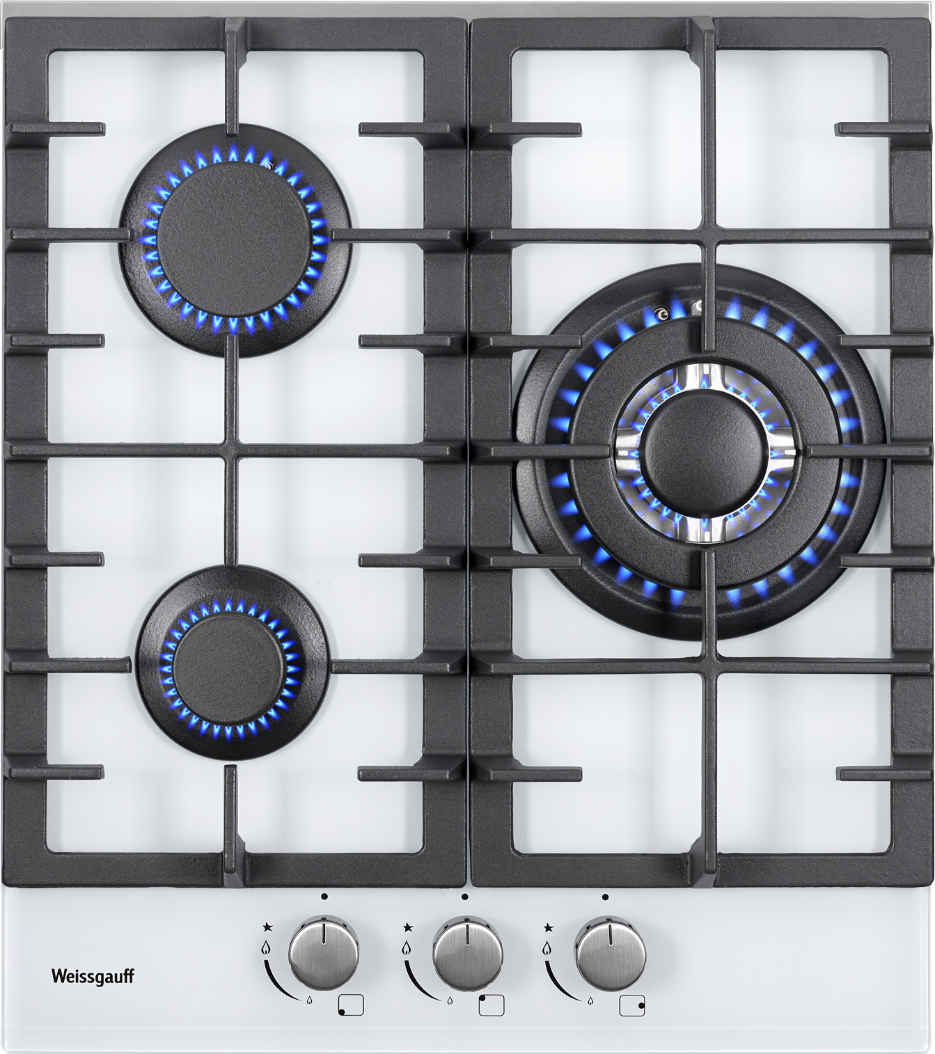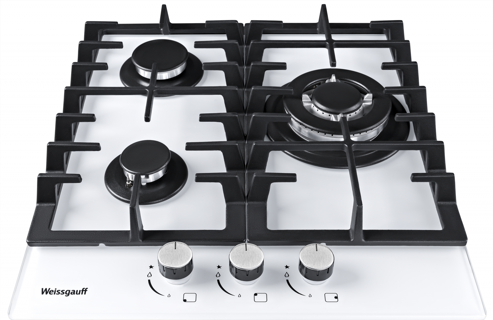 Встраиваемая независимая газовая панель Weissgauff шириной 45 см, исполненная в закалённом белом стекле - это стильное и компактное решение для вашей кухни!