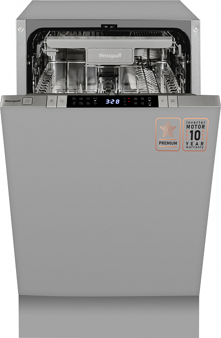 Узкая посудомоечная машина Weissgauff, оснащенная инверторным двигетелем и функцией автоматического открытия дверцы, не только сэкономит место на вашей кухне, но и обеспечит идеальный результат: 3 корзины позволят расположить посуду оптимальным образом для достижения наилучшего качества мытья, а наличие 8 программ для мытья позволит подобрать оптимальный режим в зависимости от количества посуды и степени загрязнения.