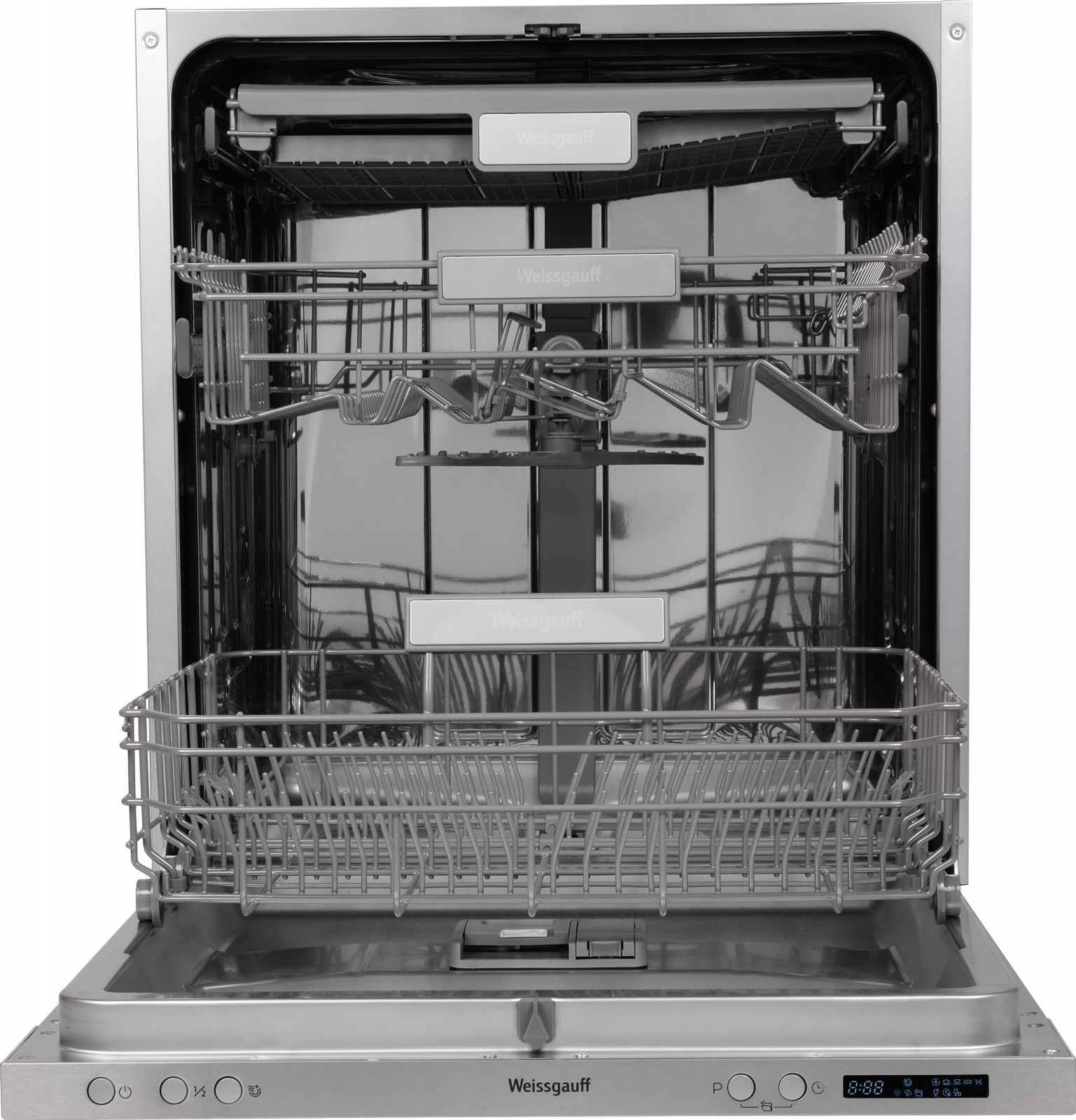 Полноразмерная посудомоечная машина Weissgauff шириной 60 см, рассчитанная на 14 комплектов посуды, не только отлично будет смотреться на вашей кухне, но и обеспечит идеальный результат: 3 корзины позволят расположить посуду оптимальным образом для достижения наилучшего качества мытья, а наличие автопрограммы позволит машине самостоятельно определить количество посуды, степень загрязнения, время мойки, а также необходимую температуру.