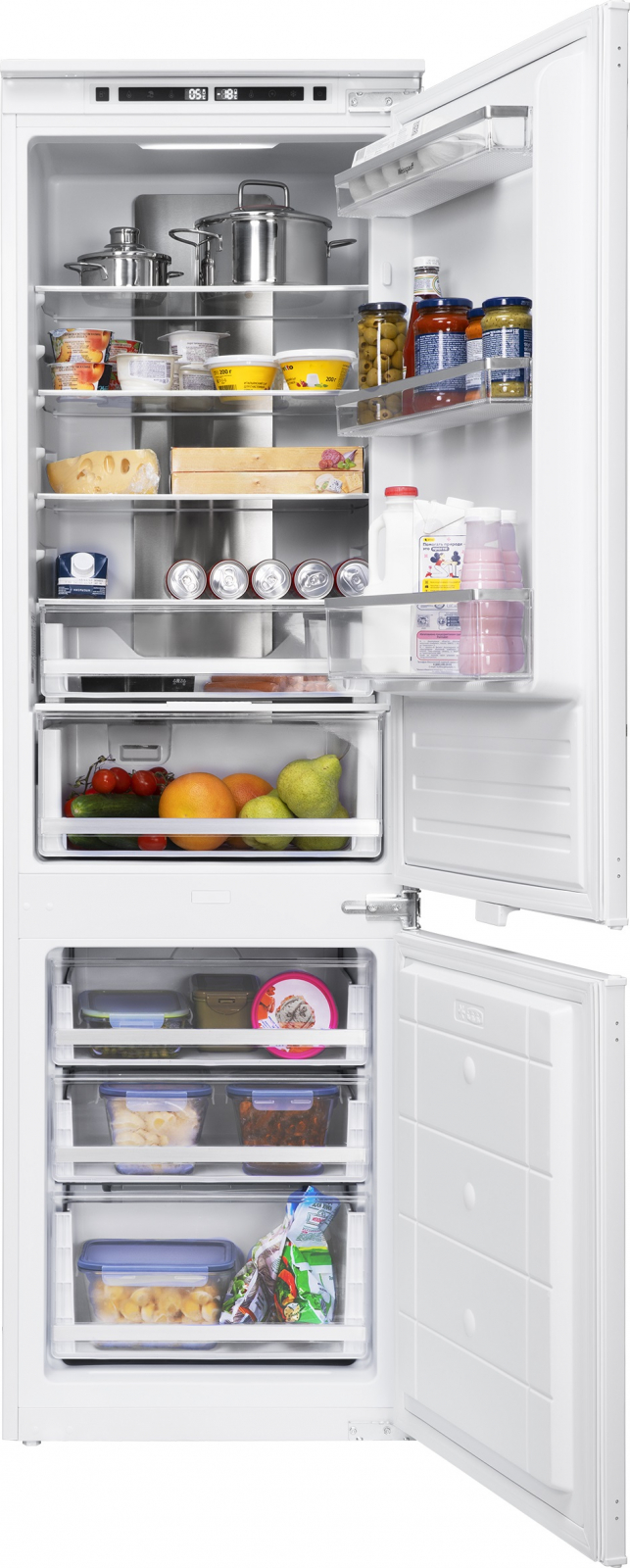 Встраиваемый холодильник от Weissgauff, обладающий полной системой размораживания Full No Frost, двумя независимыми контурами охлаждения, позволяющими автономно управлять температурой в холодильном и морозильном отделении, а также в зоне свежести, а также инновационной системой контроля температуры STEEL COOLING - это воплощение всех наиболее передовых инженерных решений Weissgauff в области встраиваемых холодильников!