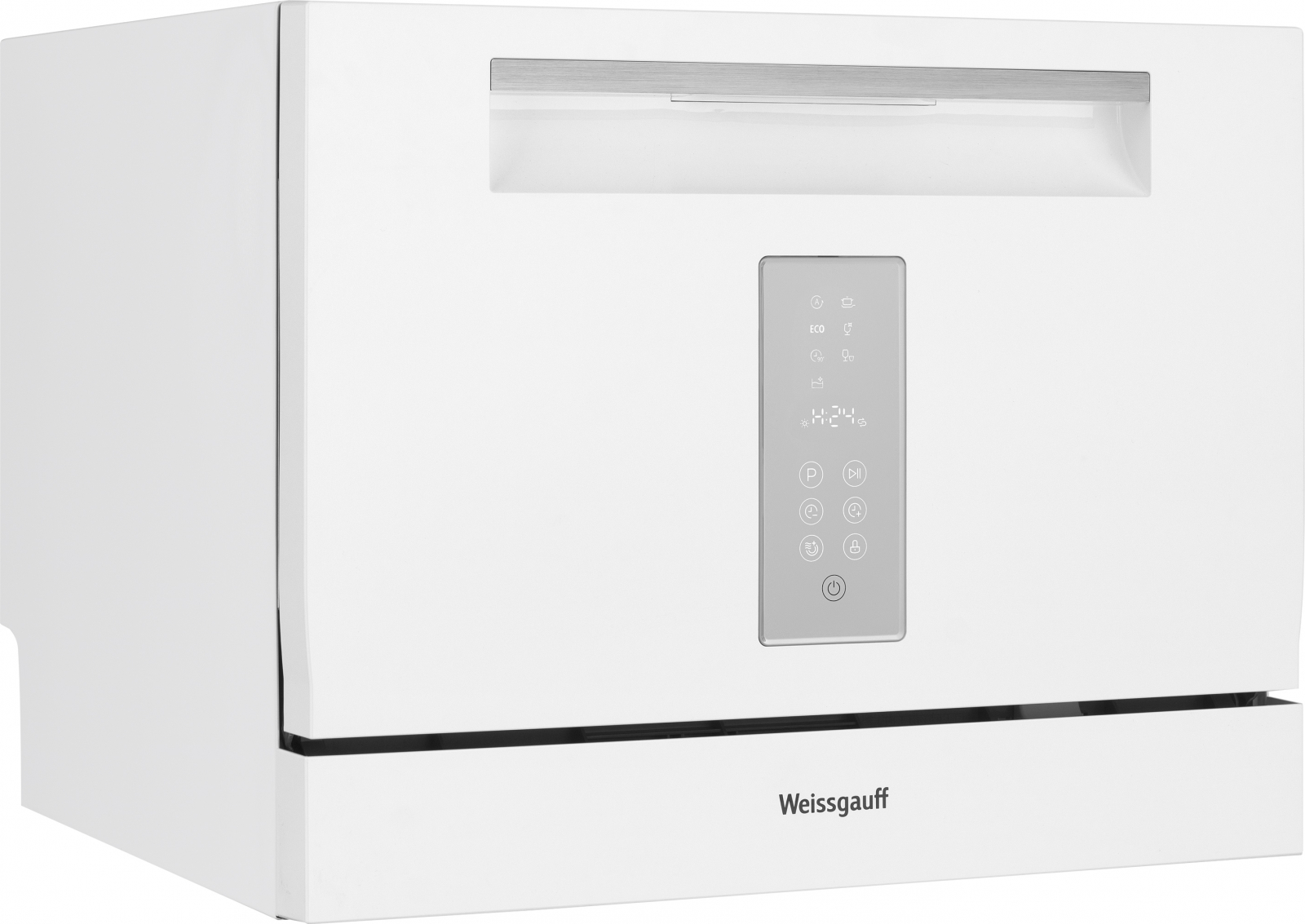 Настольная посудомоечная машина, оснащенная сенсорным управлением, набором из 7 высокоэффективных программ (включая автопрограмму Blitz Wash и Самоочистку), обладающая вместимостью 6 комплектов - это модель, которая отличается не только компактностью, но и совершенством технологической функциональности, которым так славится продукция Weissgauff!