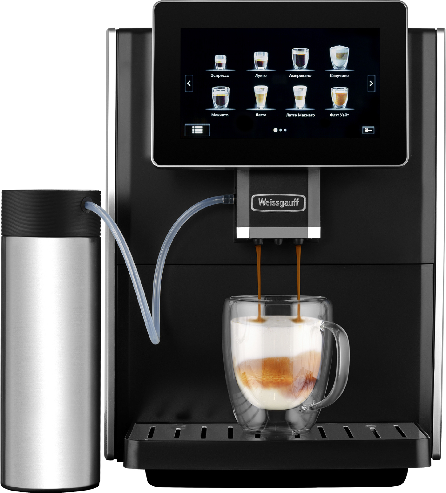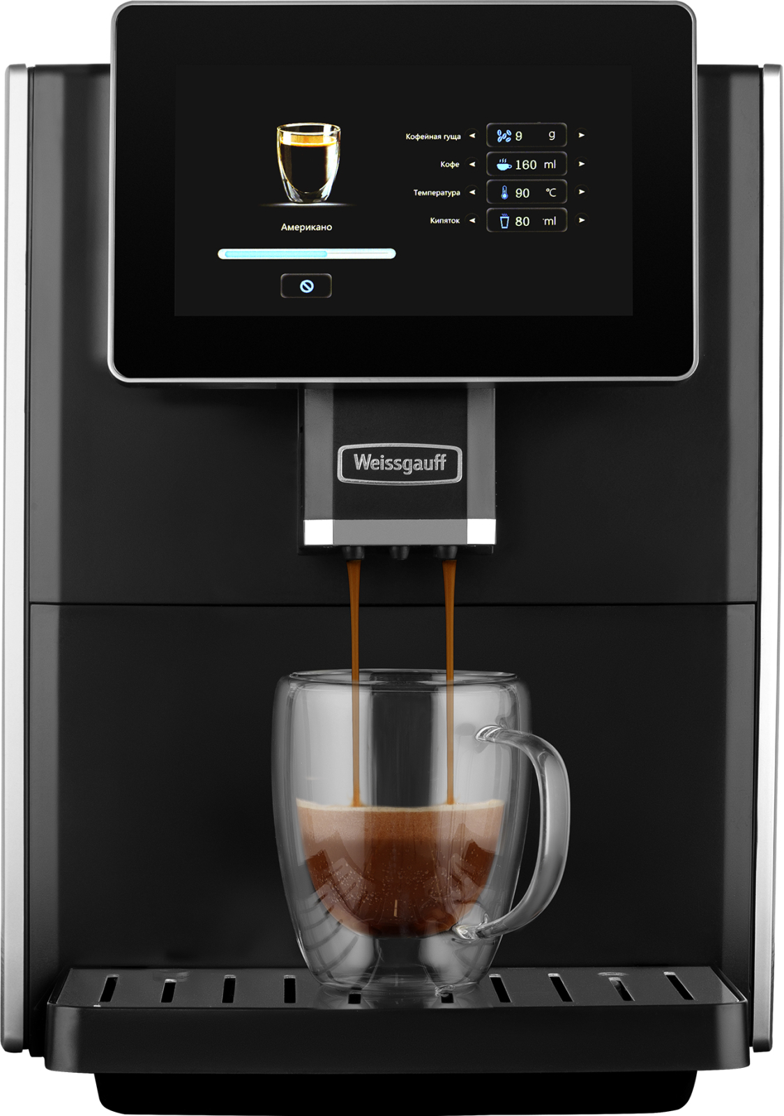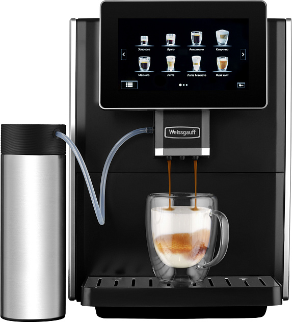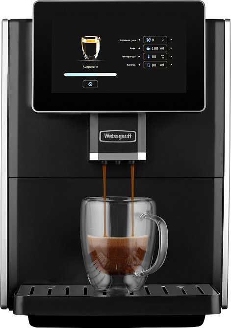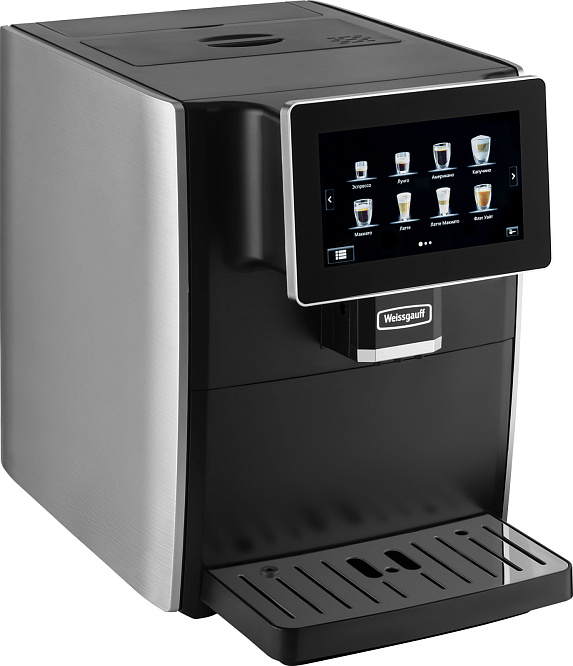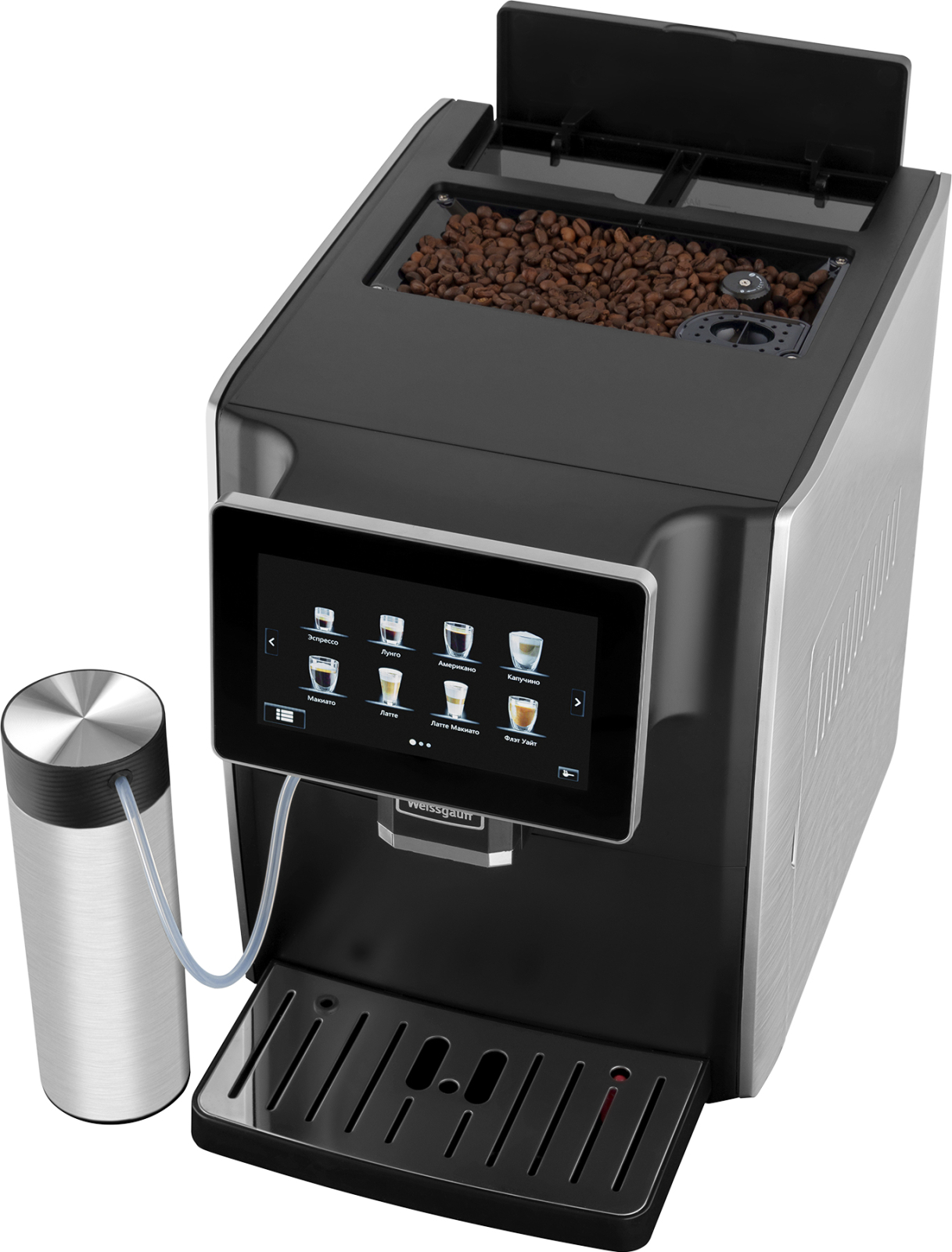 Кофемашина от Weissgauff, выполненная в сочетании черного и серебристого цветов, оснащенная вместительным контейнером для зерен на 160 граммов и емкостью для молотого кофе на 10 порций, обладающая цветным сенсорным дисплеем, системой подачи молока с капучинатором, внешней емкостью для молока, а также 8 заранее предустановленными программами для приготовления ароматного вкуснейшего кофе прямо на вашей кухне!