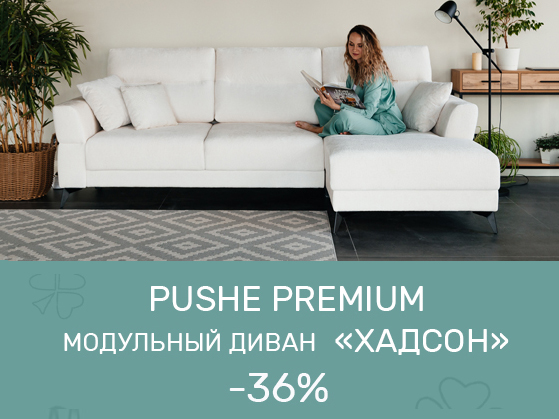 В честь создания новой разработки мы временно снизили цену на 36%! И диван "Хадсон" стал выгоднее более, чем на 50 000 ₽ во всех конфигурациях! Цена увеличится 27 августа. Такой скидки больше не будет. Поэтому предупреждаем заранее! Приходите в салон Pushe за удобным диваном в уникальном дизайне! https://impmebel.ru/brands/pushe/