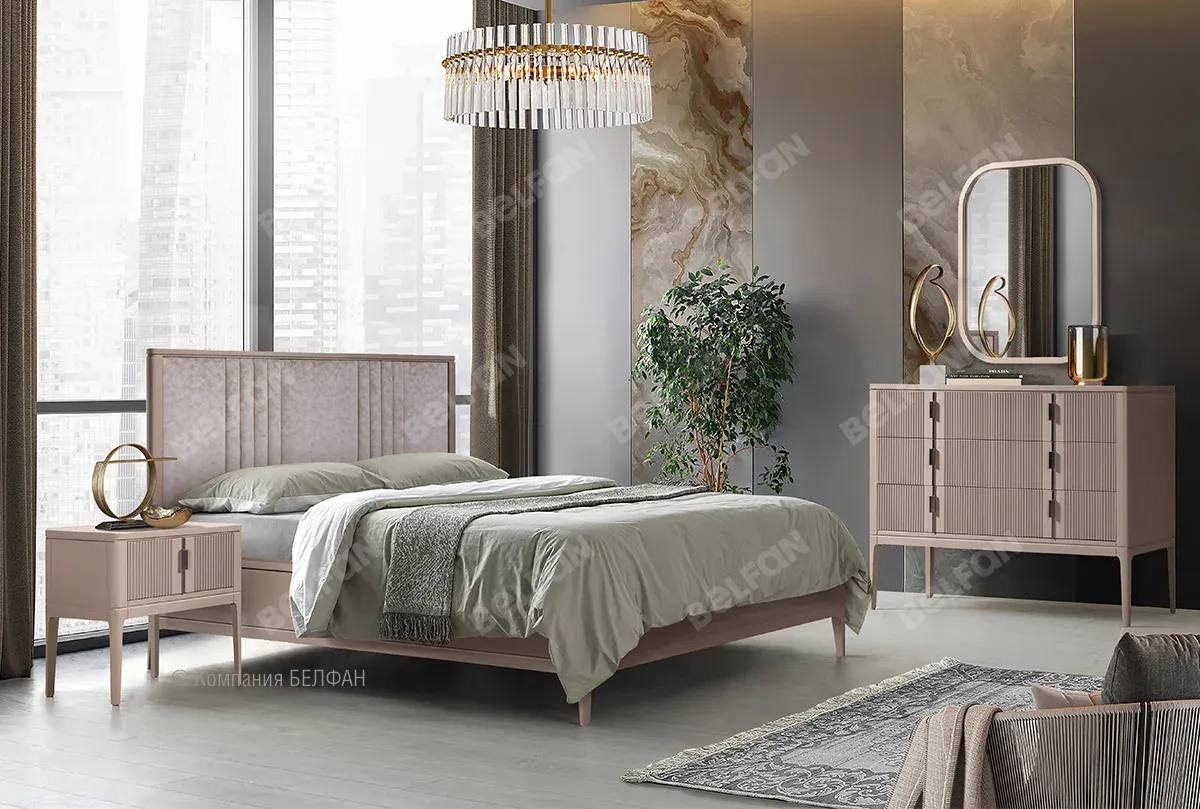 Эффектные фасады с дизайнерской фурнитурой создают неповторимую уникальность и роскошь этой коллекции, современные лаконичные классические формы с плавными линиями, шелковисто-матовое покрытие в нюдо-пудровом оттенке делают коллекцию универсальной для любого современного интерьера.